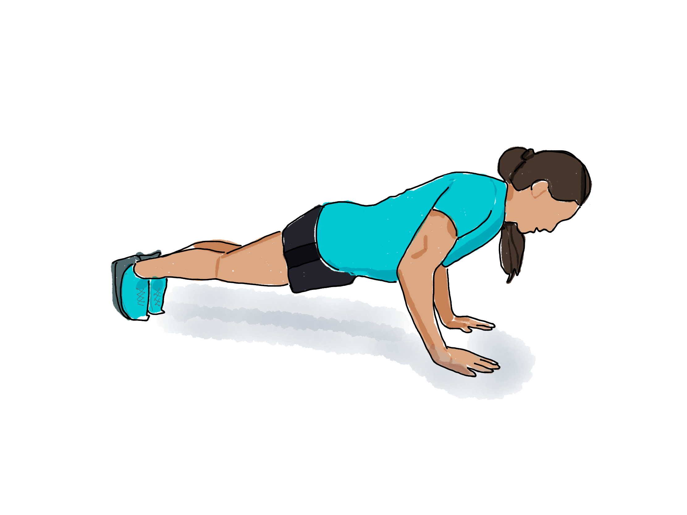 Hold the core firm and don’t let the back collapse. Use push-up bars if you have them to protect your wrists.